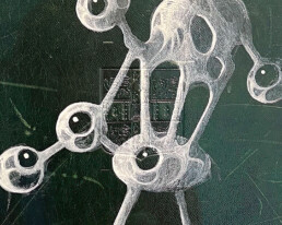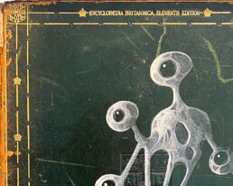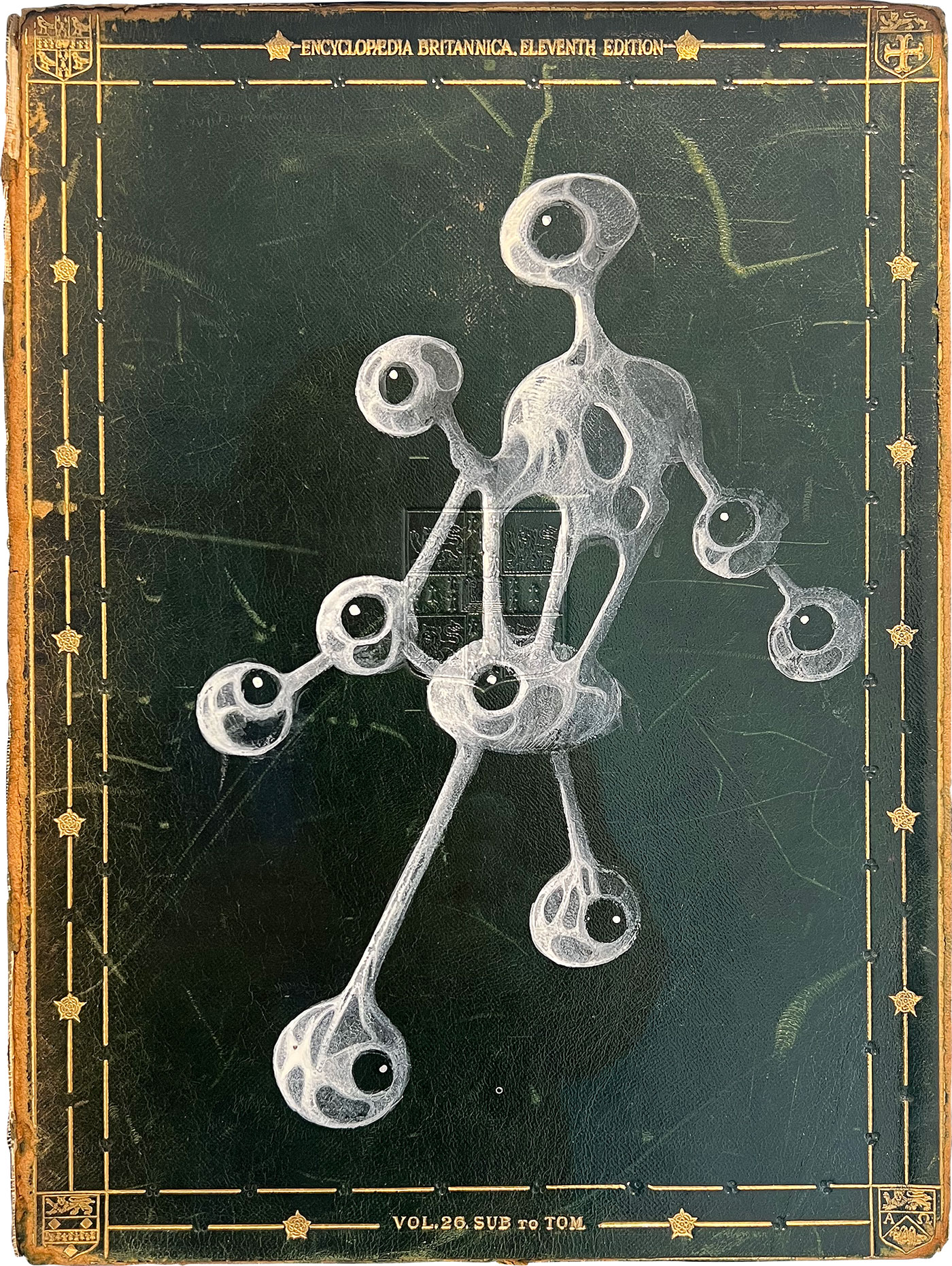 Acrylic on leather cover of 1910, 11th Edition of Britannica Encyclopaedia