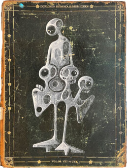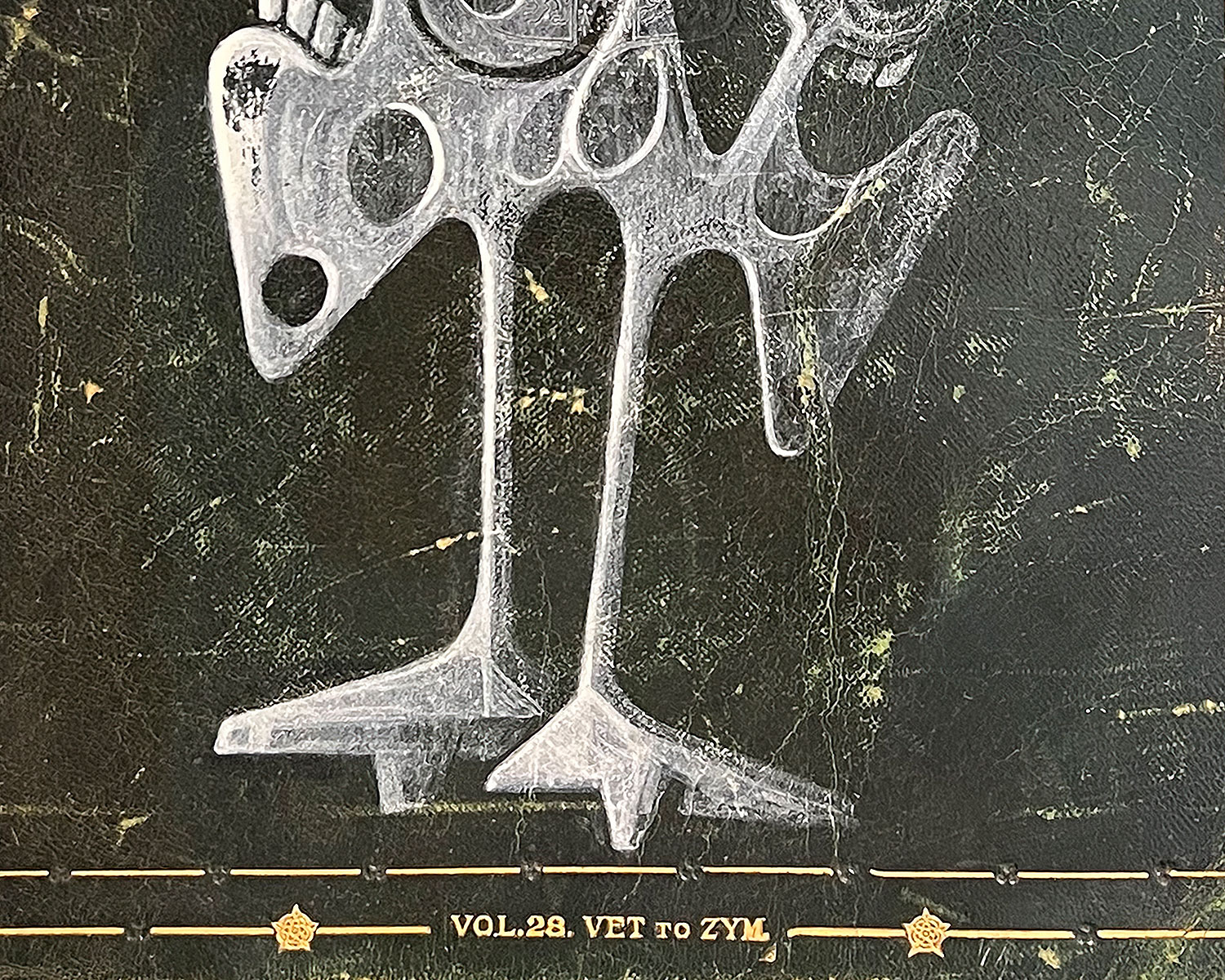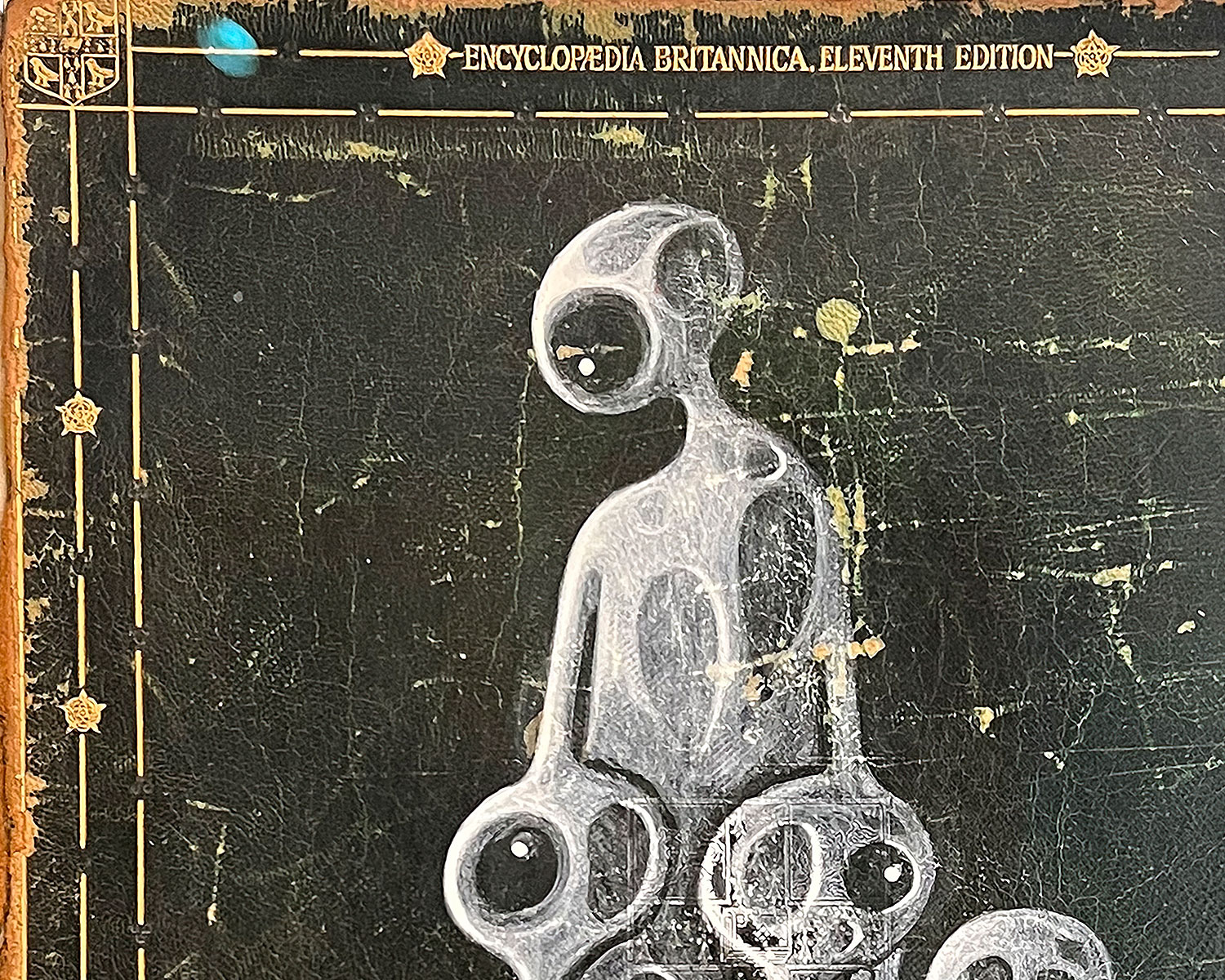 Acrylic on leather cover of 1910, 11th Edition of Encyclopaedia Britannica