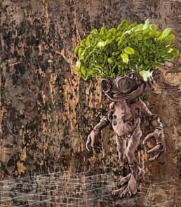 These otherworldly Humanoid Sentivars feel deeply, they embody human emotions and philosophy and are acutely aware of life’s nuances and energies. To this end they are examples of anthropomorphism in that Donovan seeks to interpret nonhuman entities in terms of human characteristics. Arguably this is a deeply rooted human impulse, found across cultures and eras, that serves to make the unfamiliar comprehensible and relatable. Through this personification Donovan is aiming for abstract concepts like emotion, knowledge, or the human condition to be visualized andemotionally accessed by you the viewer. In other words they are meant to both reflect and explain one’s inner lives whilst also being both shaped by and shaping their environments.