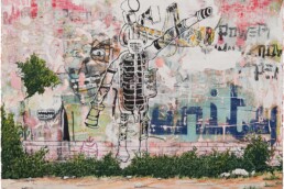 This character, featured in this work amongst others, came into being through collage. Over the months as I’ve got to know it I sometimes wonder if it’s my alter ego. It certainly possesses characteristics I aspire to have, namely a confidence in the face of fear.