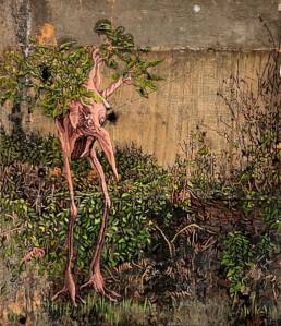 These otherworldly Humanoid Sentivars feel deeply, they embody human emotions and philosophy and are acutely aware of life’s nuances and energies. To this end they are examples of anthropomorphism in that Donovan seeks to interpret nonhuman entities in terms of human characteristics. Arguably this is a deeply rooted human impulse, found across cultures and eras, that serves to make the unfamiliar comprehensible and relatable. Through this personification Donovan is aiming for abstract concepts like emotion, knowledge, or the human condition to be visualized andemotionally accessed by you the viewer. In other words they are meant to both reflect and explain one’s inner lives whilst also being both shaped by and shaping their environments.